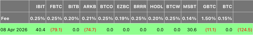 美国现货 BTC ETF 资金流向呈现混合走势